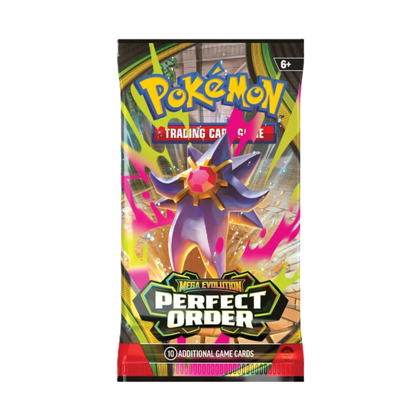 Ontdek nieuwe strategieën en breid je collectie uit met een Pokémon Perfect Order – Boosterpack. Elk boosterpakket uit de Perfect Order-serie bevat een selectie van 10 willekeurige kaarten, waaronder kans op zeldzame en krachtige Pokémon om je deck te versterken.